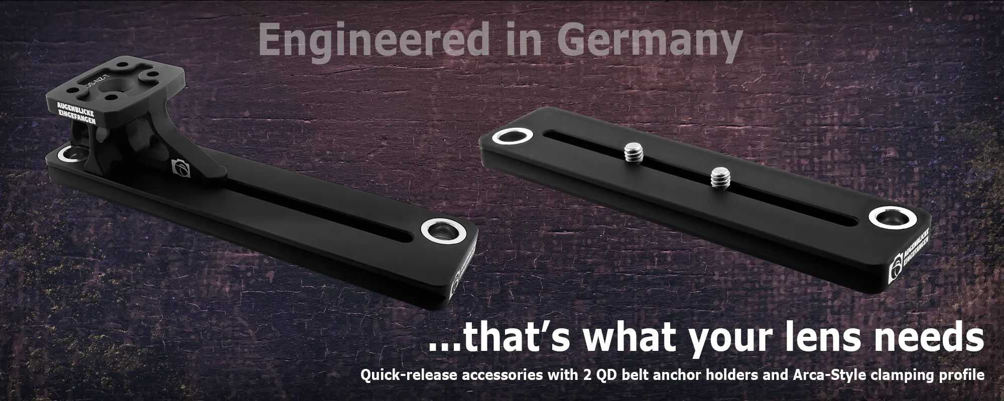 - Arca-style tripod plates, replacement lens feet, camera L-brackets